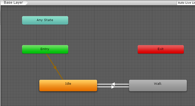 Entry为起始点,箭头指向的动画Idle为静止动画,人物不动的时候播放该动画,当人物移动时,需要切换为移动动画,白色的双向箭头中可以添加切换的条件